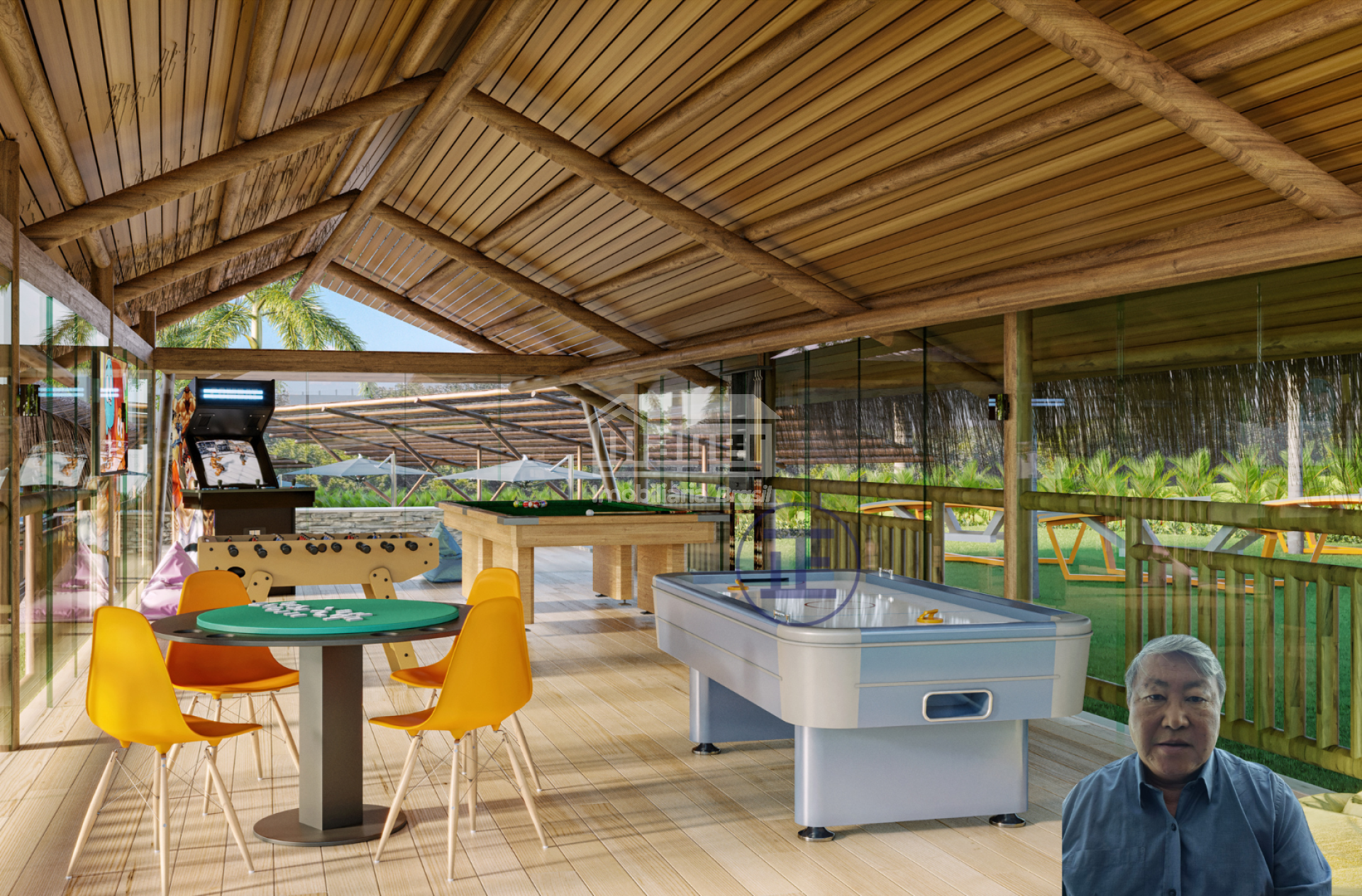 • Espaço de conveniência, restaurante/bar interno, pavilhão de jogos e redários para relaxar