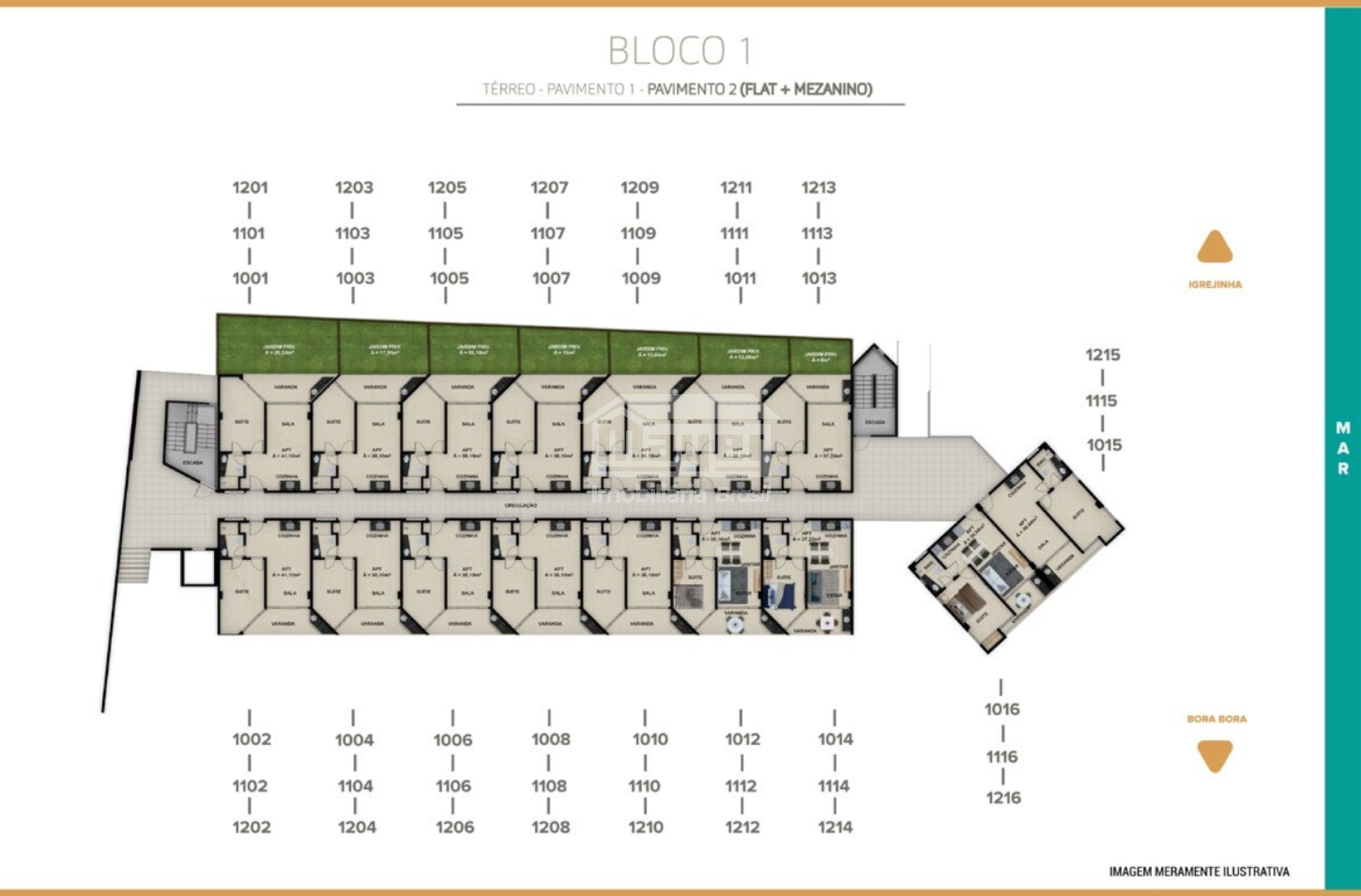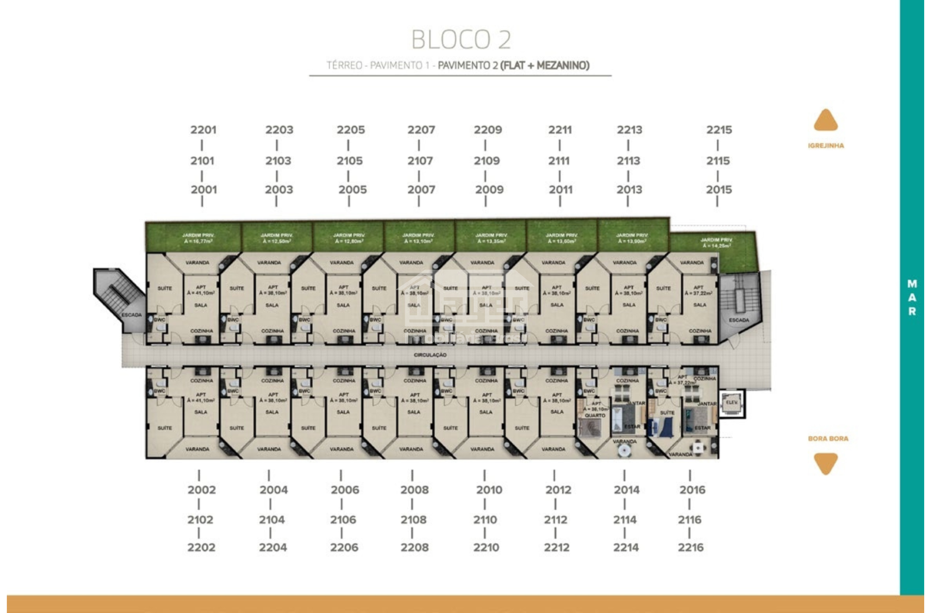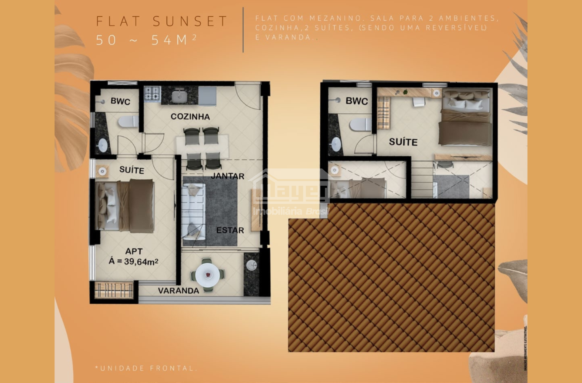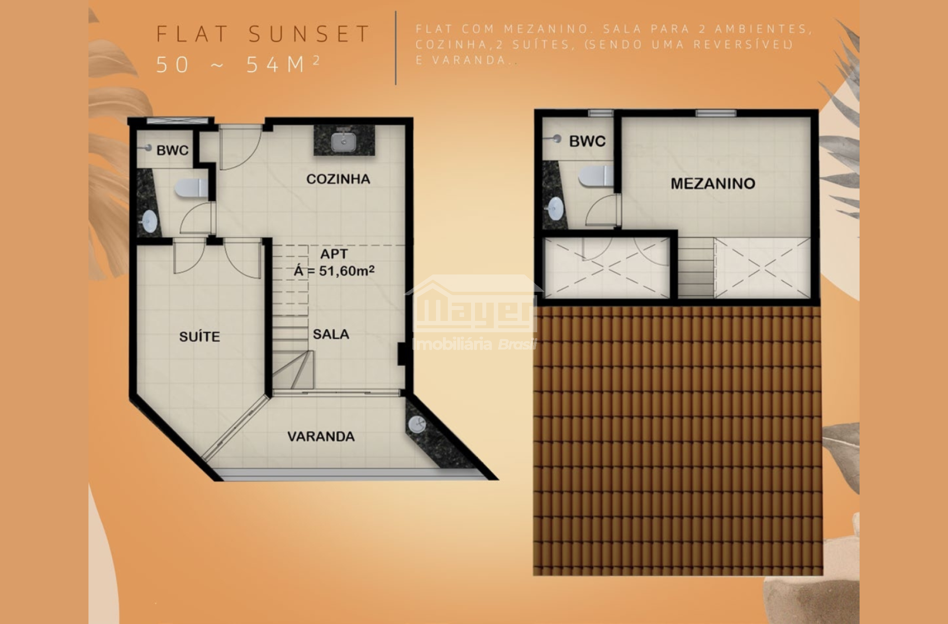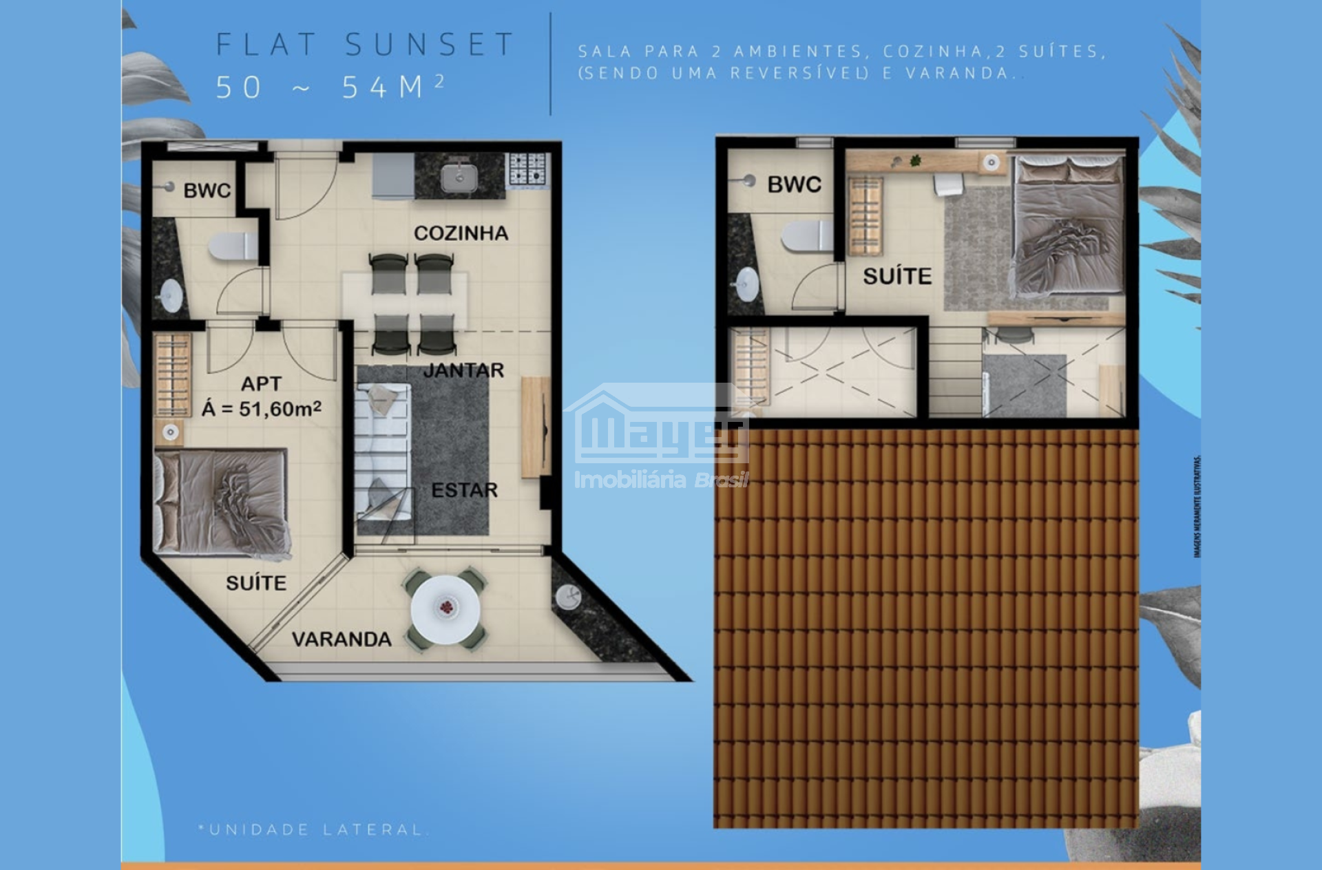 • Apartamentos duplex de 51,6 m² (2 quartos / 2 suítes), sala e cozinha