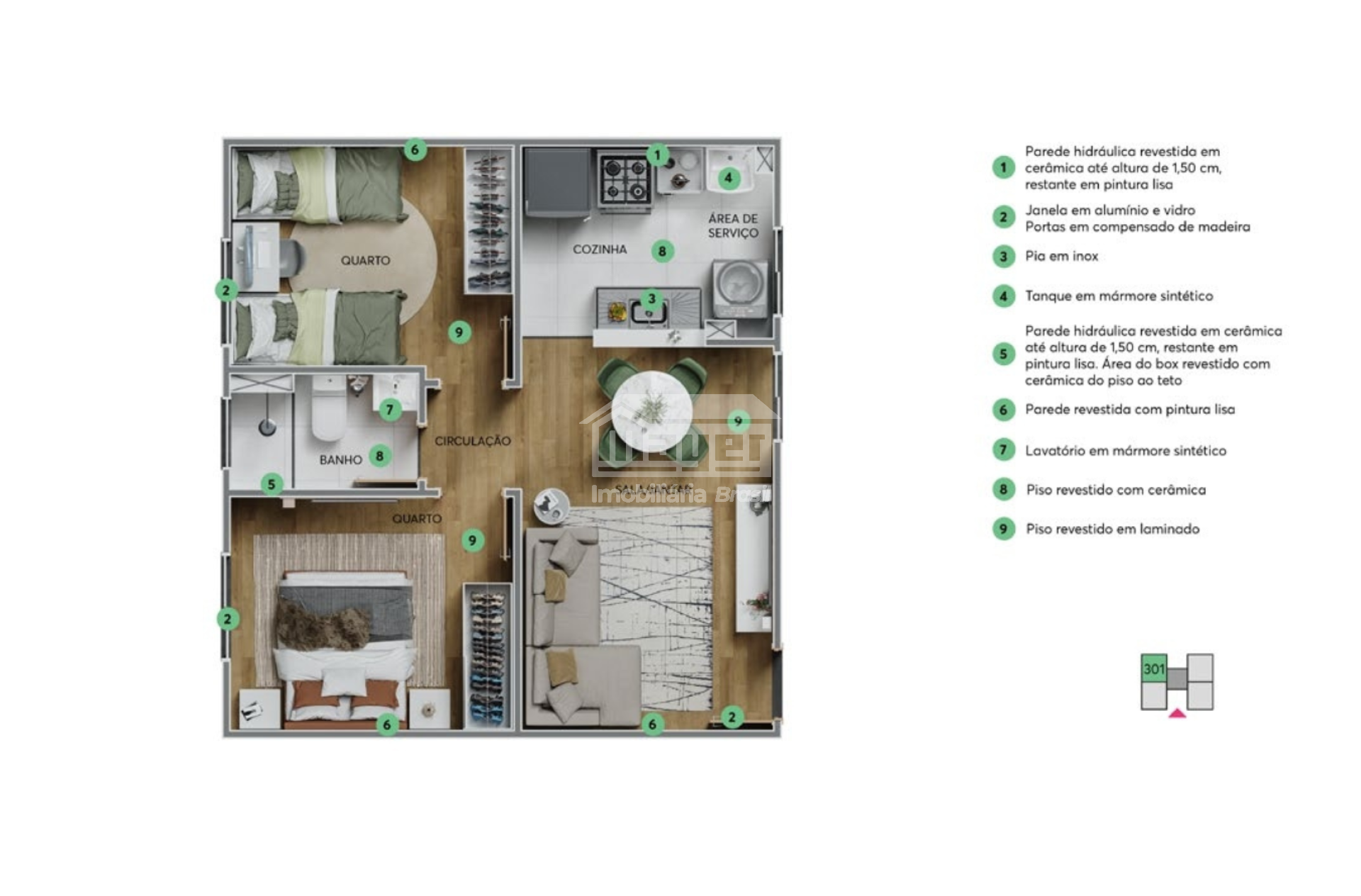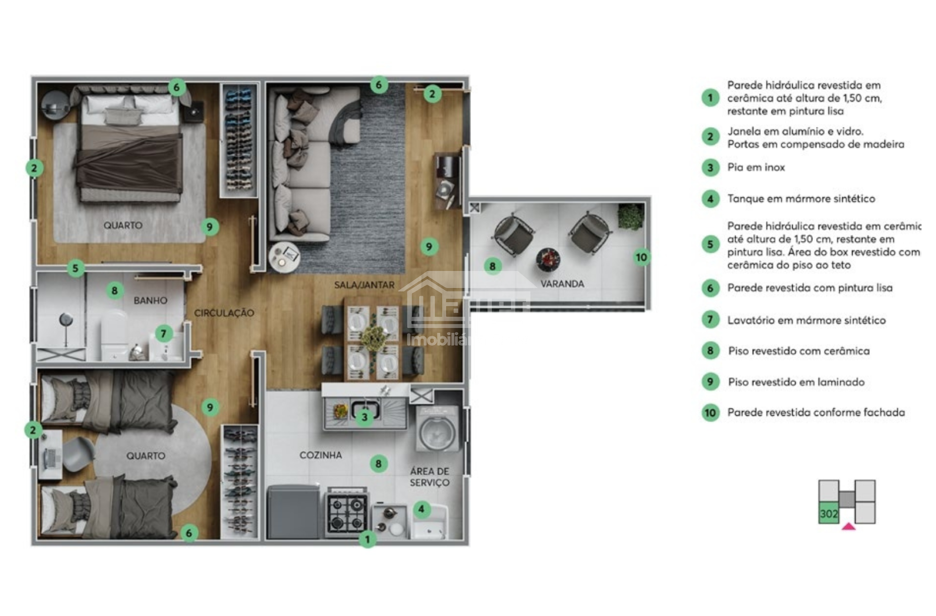 • 2 quartos com varanda: