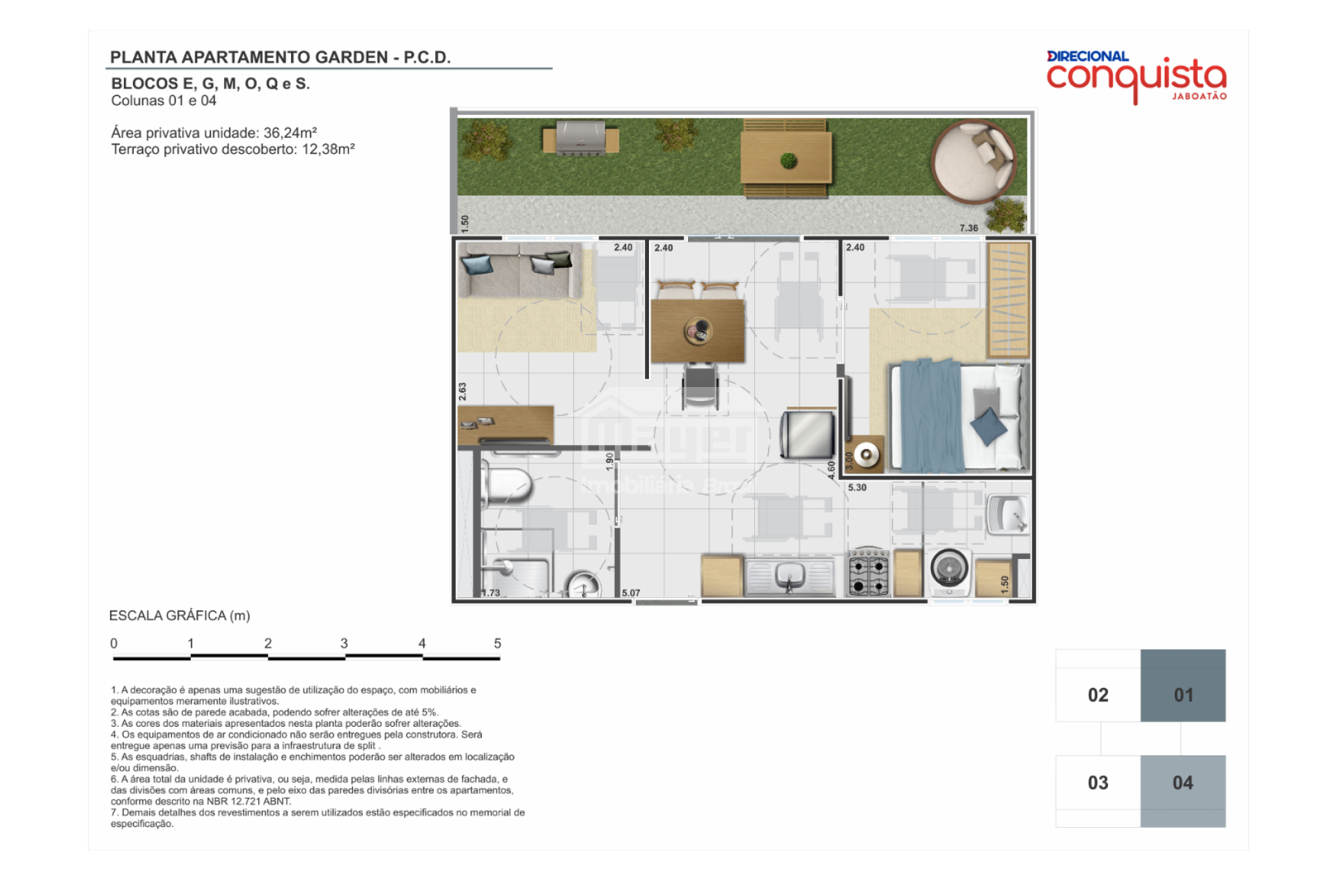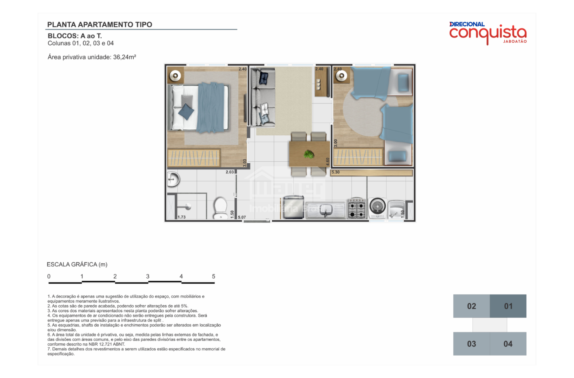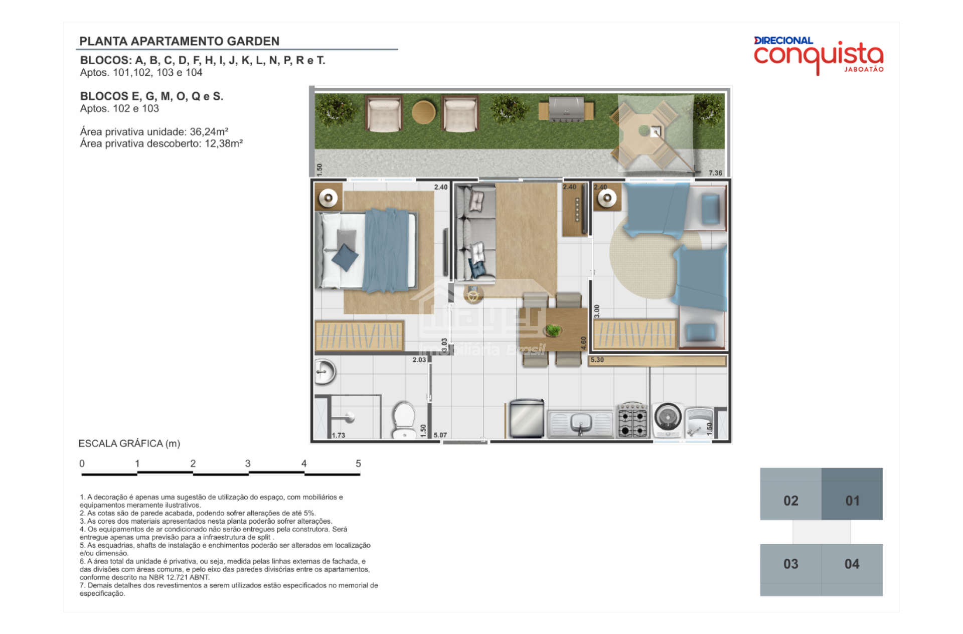• Área privativa: 36,24 m²