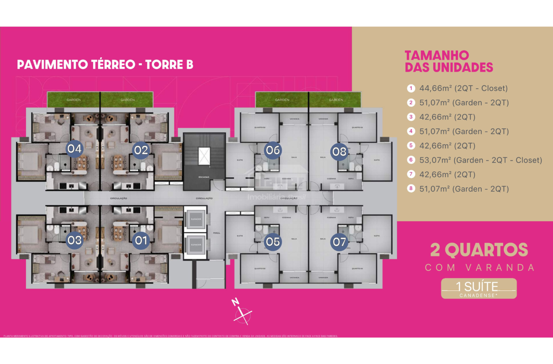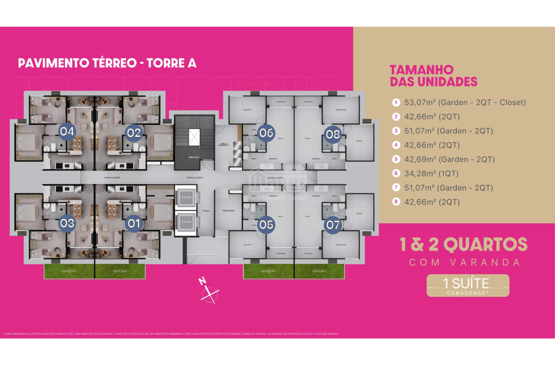 • Unidades garden com varanda estendida e jardim
