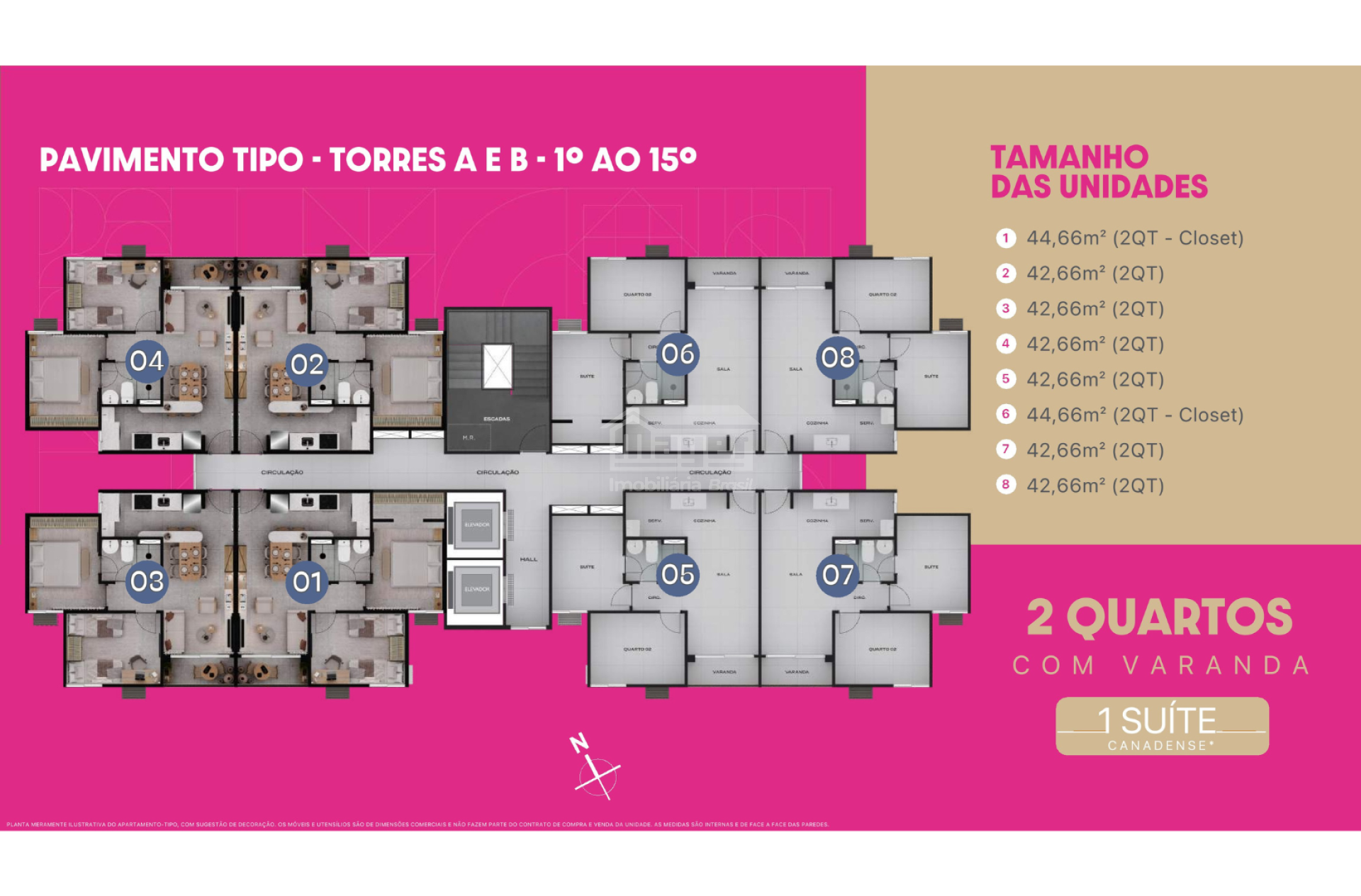 Áreas entre 42,66 m² e 53,07 m².