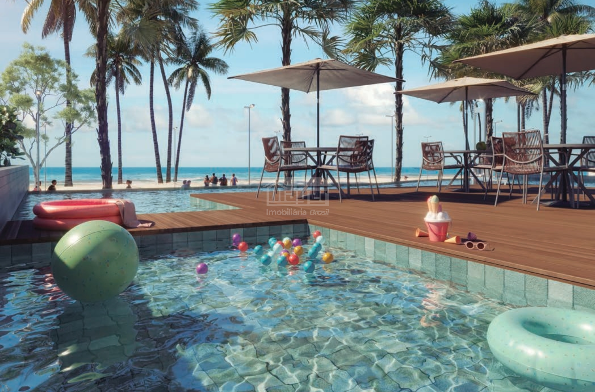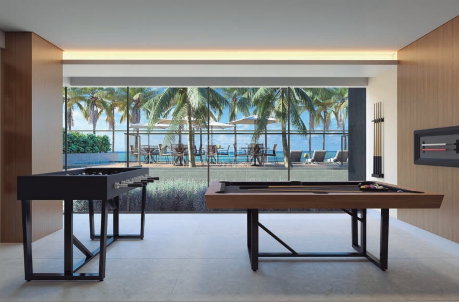 Beach club com piscina adulto e infantil de borda infinita, espaço gourmet, brinquedoteca, sala de jogos, playground, pet place e lounge contemplativo.