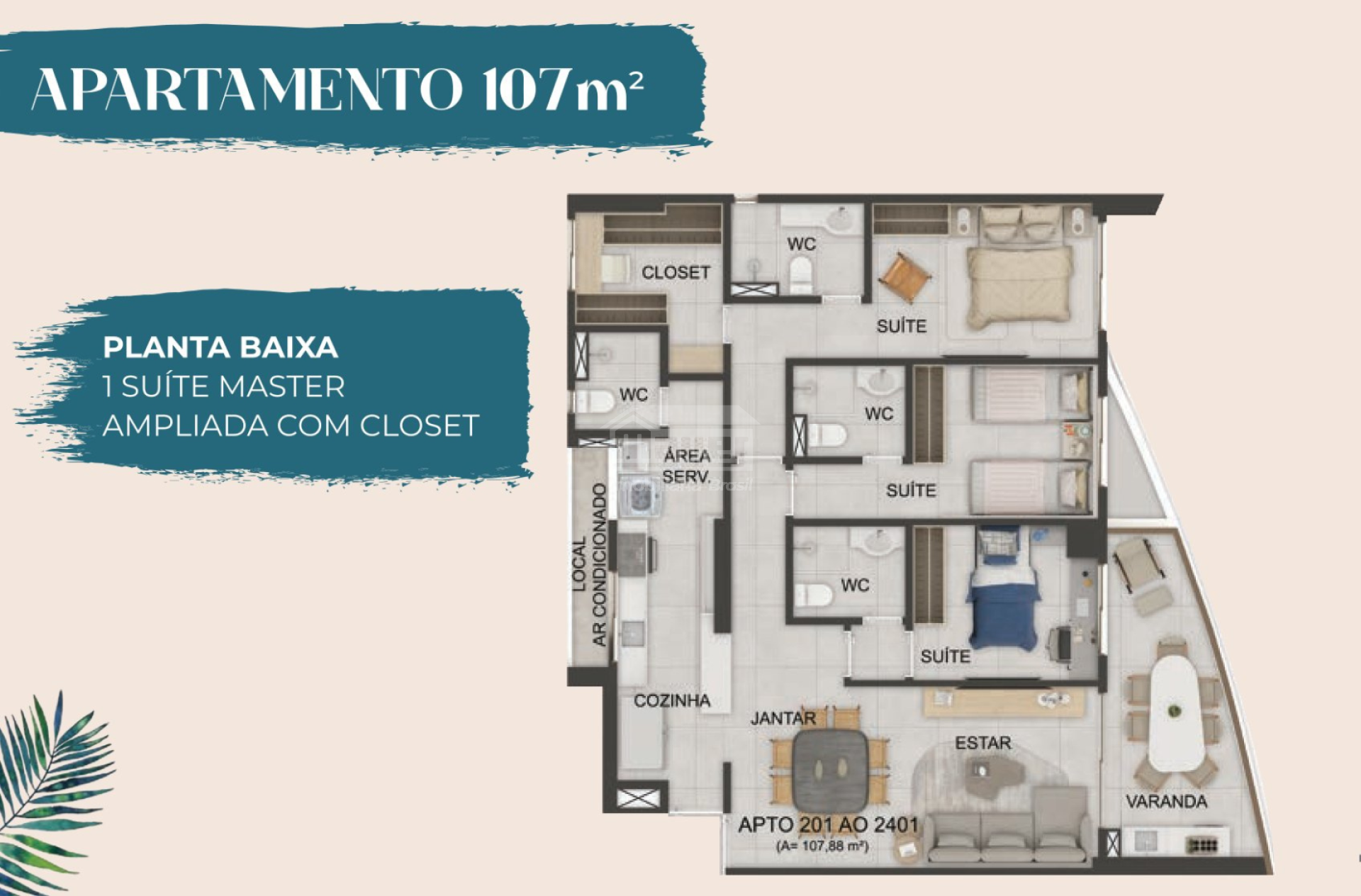 Terrazza Beira Mar Terrazza Beira Mar | Apto 3 quartos sendo 3 suites | 107,88m² | Orla de Piedade | Lqazer completo