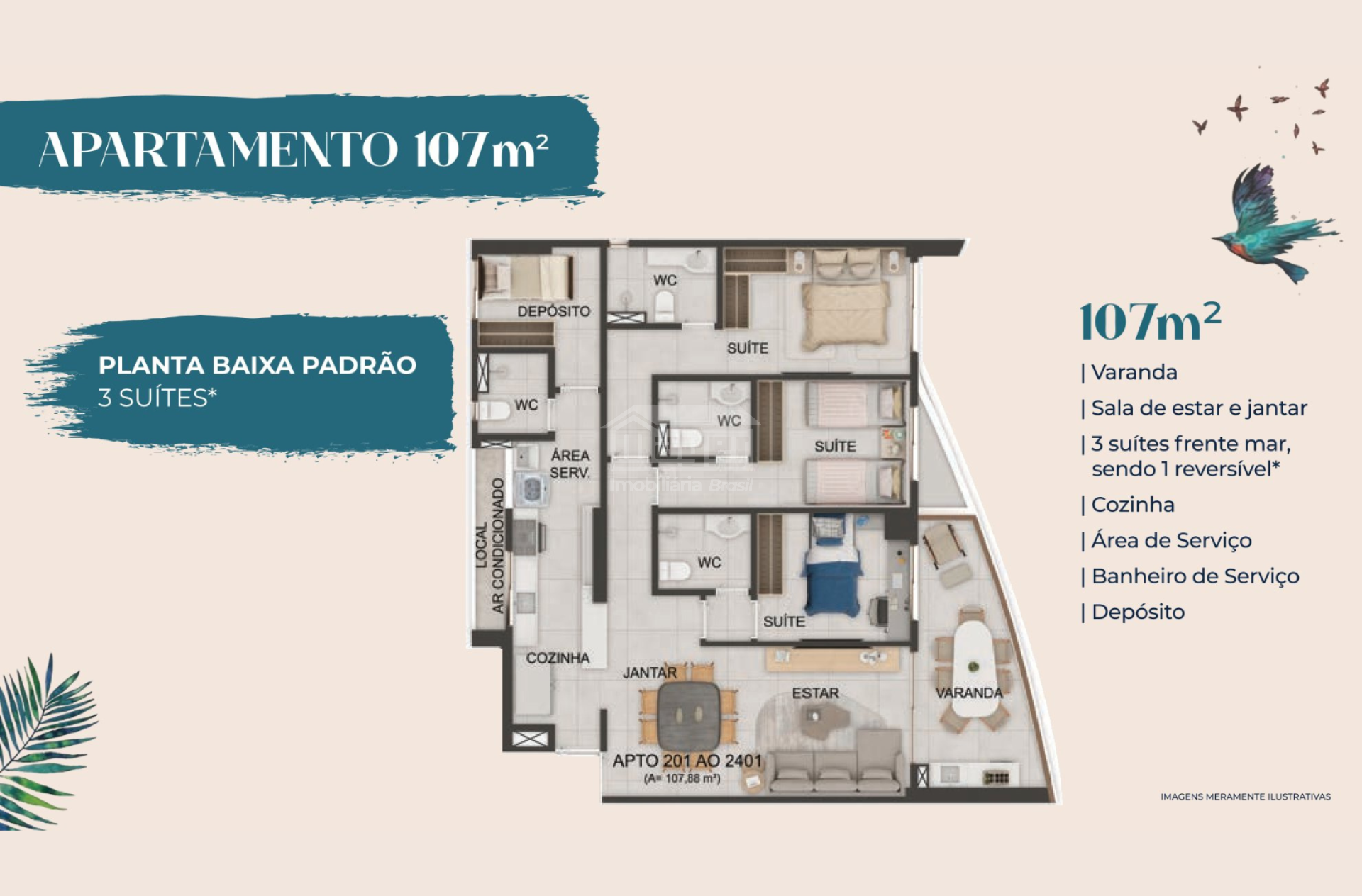 Terrazza Beira Mar | Apto 3 quartos sendo 3 suites | 107,88m² | Orla de Piedade | Lqazer completo