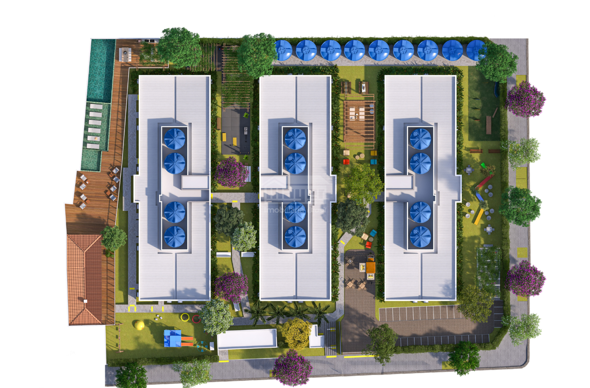 Piscina e deck • Espaço Grill • Sports Bar • Salão de Festas • Cine Room • Coworking • Espaço Gamer • Brinquedoteca • Playground • Pet Place e Pet Wash • Espaço Fitness • EcoCross • EcoFitness • Praça Piquenique • Espaço Zen • Horta Vertical • Bicicletário • Mini Market • Lavanderia