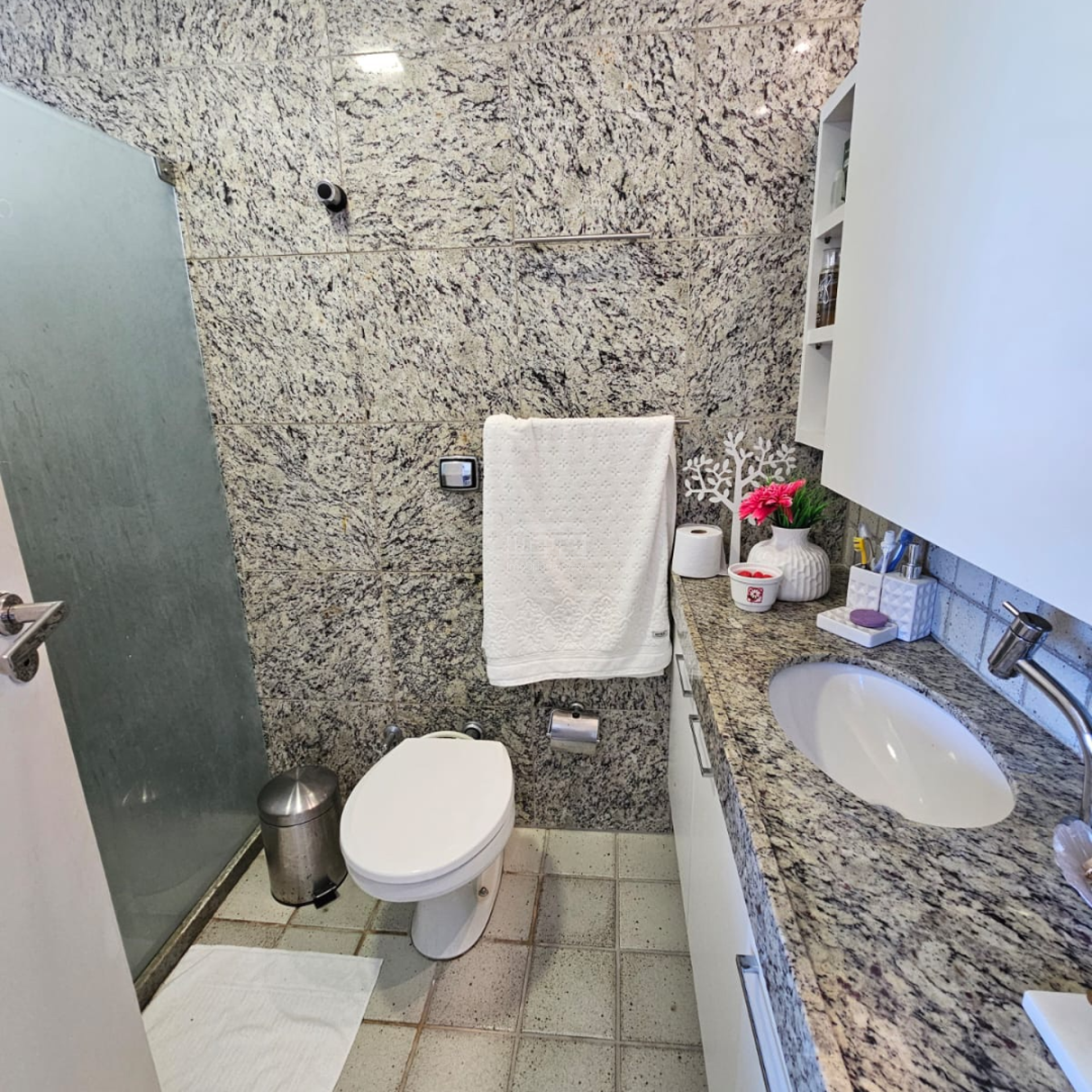 O apartamento dispõe ainda de banheiros com acabamento em